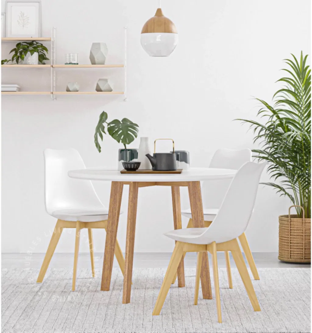 MESA REDONDA 120 CON 4 SILLAS TULIP BLANCAS
