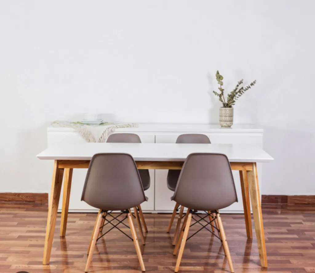 MESA 1.20 CON 4 SILLAS EAMES GRISES